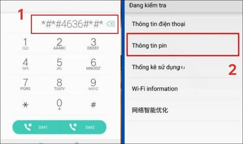 Một cách nhanh chóng khác để kiểm tra tình trạng pin là sử dụng mã code *#*#4636#*#*. Bạn chỉ cần mở ứng dụng gọi điện và nhập vào mã này, sau đó tìm mục Battery Information. Điều này sẽ giúp bạn có cái nhìn tổng quan về sức khỏe của pin một cách nhanh chóng và dễ dàng.