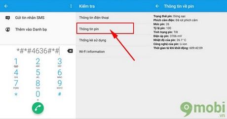 Ngoài ra, bạn cũng có thể kiểm tra nhanh tình trạng pin bằng cách sử dụng mã code. Bạn chỉ cần mở ứng dụng gọi điện và nhập mã *#*#4636#*#*. Ngay lập tức, một màn hình mới sẽ xuất hiện, cho phép bạn truy cập vào thông tin về pin của thiết bị. Nhấn vào mục Battery Information để xem các thông số cụ thể.