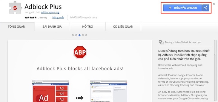 Rất nhiều người dùng Internet cảm thấy khó chịu khi bị làm phiền bởi những quảng cáo xâm nhập trên các trang web. Để khắc phục tình trạng này, bạn có thể sử dụng các tiện ích chặn quảng cáo, trong đó AdBlock Plus là một trong những lựa chọn phổ biến nhất. Việc cài đặt khá đơn giản, chỉ cần vào Cửa hàng Chrome trực tuyến, tìm kiếm AdBlock Plus và nhấn “Thêm vào Chrome”.