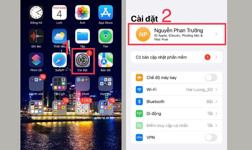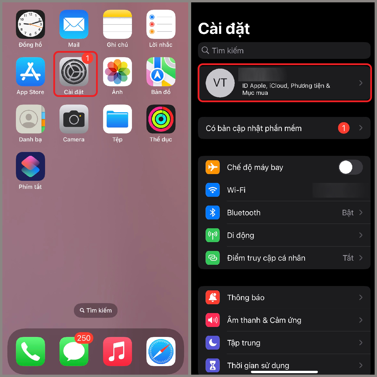 Nếu bạn muốn tắt chức năng Find My iPhone trên thiết bị của mình, hãy làm theo các bước đơn giản dưới đây. Đầu tiên, bạn vào phần Cài đặt trên iPhone, rồi chọn ID Apple của bạn ở đầu màn hình. Đây là nơi bạn có thể quản lý tất cả các thông tin tài khoản và thiết bị liên kết.