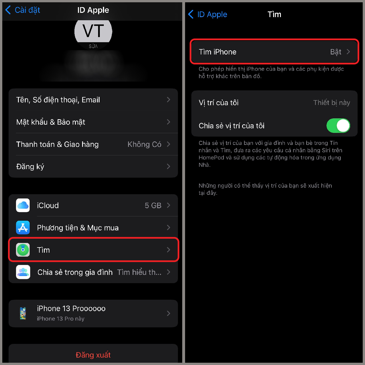 Nếu bạn muốn thực hiện trên iPhone hoặc iPad, hãy vào Cài đặt, chọn tên của bạn, và sau đó nhấn vào “Tìm của tôi”. Tiếp theo, bạn chỉ cần gạt tắt tính năng “Tìm [thiết bị]” và nhập mật khẩu Apple ID của mình để hoàn tất. Lưu ý rằng, khi tắt tính năng này, thiết bị của bạn sẽ không còn được xác định vị trí, vì vậy hãy đảm bảo bạn không cần tính năng này trước khi thực hiện.