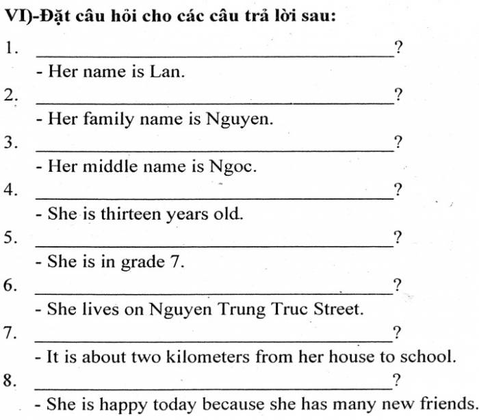 Hướng Dẫn Đặt Câu Hỏi Cho Câu Trả Lời