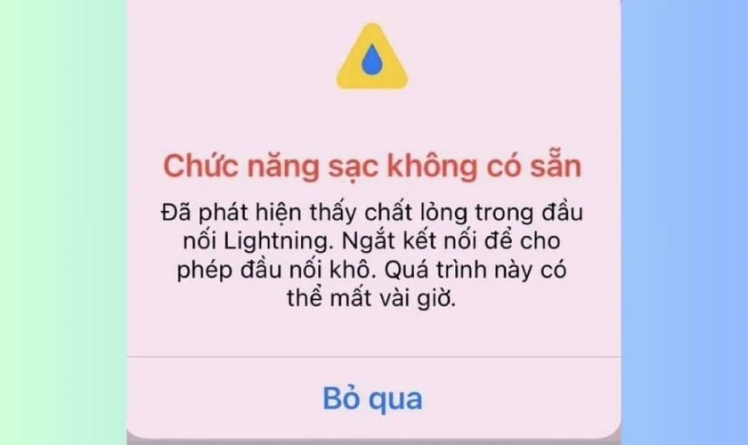 Gần đây, đã có nhiều người dùng iPhone gặp phải thông báo “Đã phát hiện chất lỏng trong đầu nối Lightning”. Thông báo này xuất hiện khi bạn kết nối phụ kiện nhưng không thể sạc được. Nguyên nhân thường là do độ ẩm hoặc chất lỏng tràn vào cổng kết nối, gây nguy cơ chập mạch.