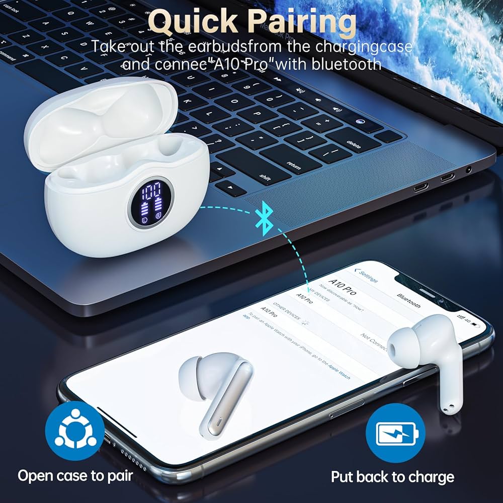 Để thiết lập và sử dụng tai nghe A10 Pro, trước tiên, bạn hãy mở nắp hộp sạc. Tai nghe sẽ tự động vào chế độ ghép nối, rất tiện lợi cho người mới sử dụng. Tiếp theo, hãy mở Bluetooth trên điện thoại của bạn và tìm thiết bị có tên A10 Pro. Khi đã kết nối thành công, bạn sẽ tận hưởng âm nhạc chất lượng cao.