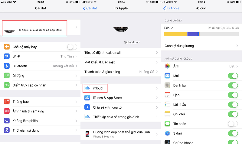 Khi sử dụng iCloud để tiết kiệm bộ nhớ cho iPhone, điều đầu tiên cần lưu ý là dung lượng miễn phí chỉ có 5GB. Để tránh tình trạng iCloud đầy, một trong những cách đơn giản nhất là giải phóng không gian lưu trữ. Bạn có thể bắt đầu bằng cách vào ứng dụng Cài đặt, chọn tên của bạn và sau đó vào iCloud để quản lý dung lượng.