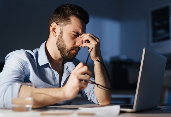 Nam giới làm việc lâu trước máy tính mệt mỏi