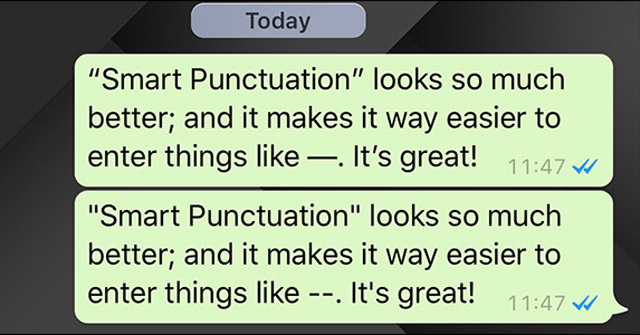 Ngoài ra, việc sử dụng dấu ngoặc kép thông minh hay dấu gạch ngang tự động làm cho văn bản trở nên chuyên nghiệp hơn. Chính vì vậy, dấu câu thông minh thực sự là một trợ thủ đắc lực cho những ai thường xuyên sử dụng iPhone để viết lách và giao tiếp.
